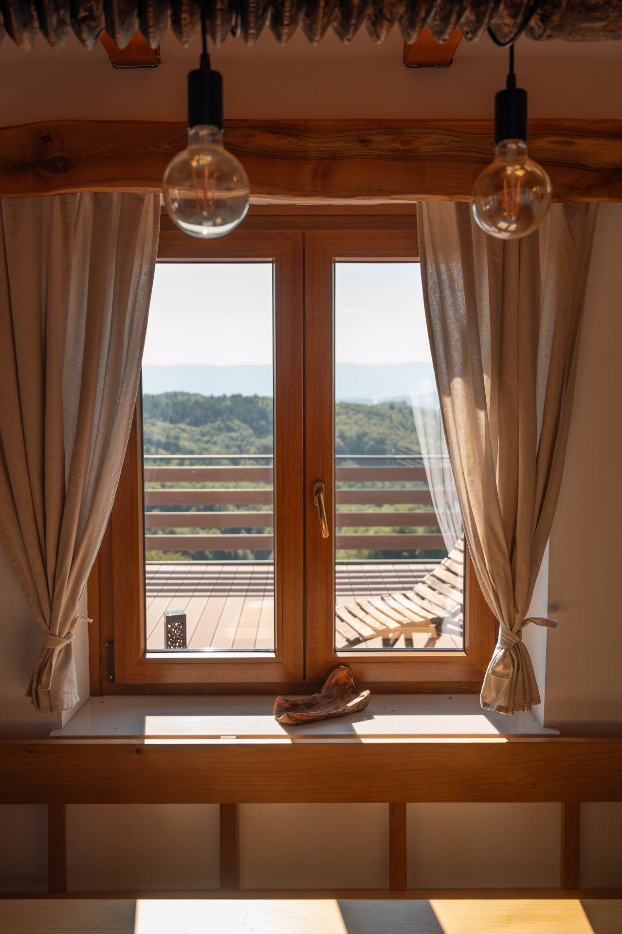 Das Dachgeschoss ist in einen Wohnbereich mit einer großen Sitzgarnitur, die sich zu einem Bett ausklappen lässt, und einen Schlafbereich mit einem massiven Doppelbett und zwei Einzelbetten unterteilt. Das Dachgeschoss ist beheizt und klimatisiert, der zentrale Raum verfügt über einen Holzkamin.
