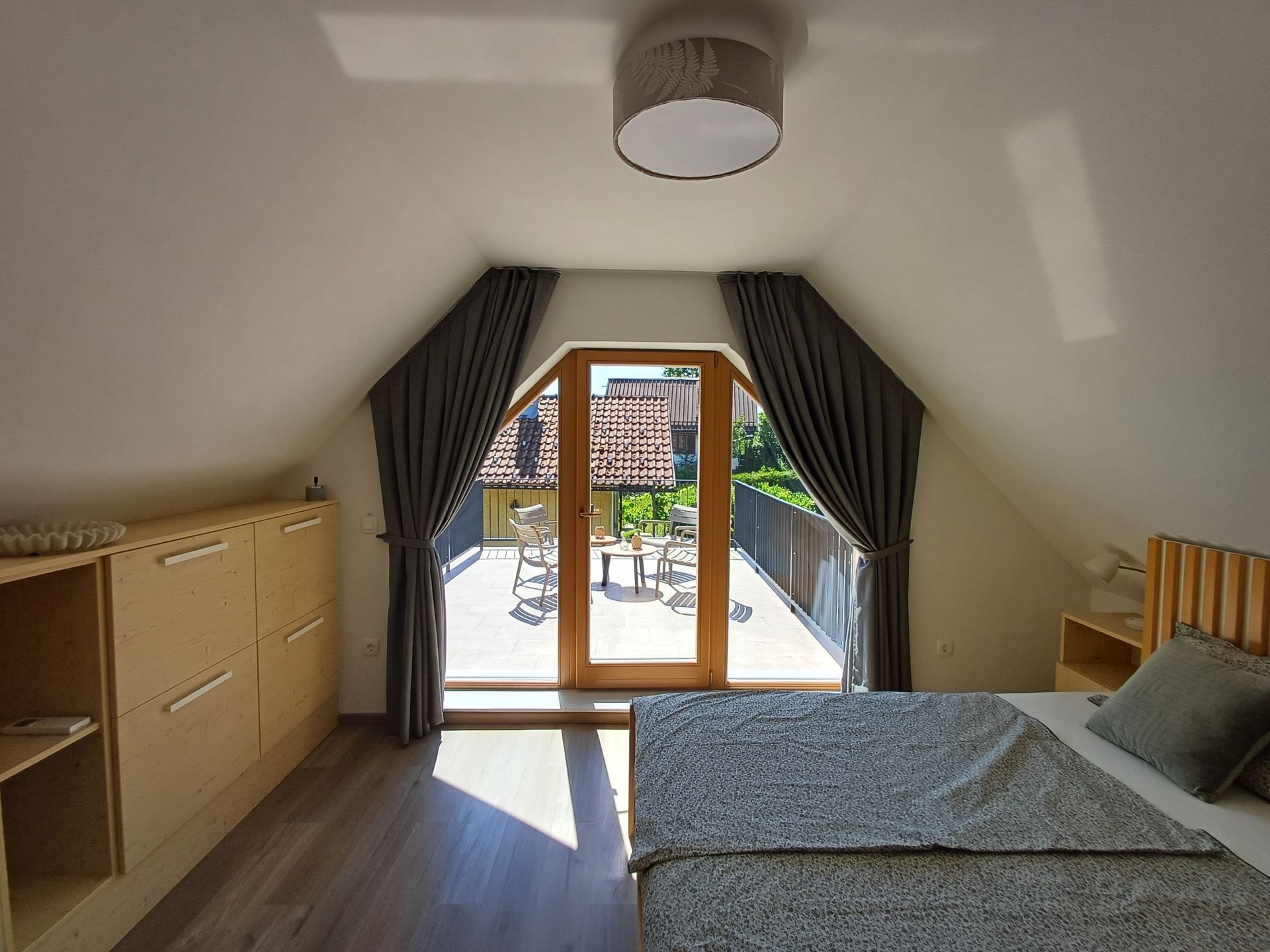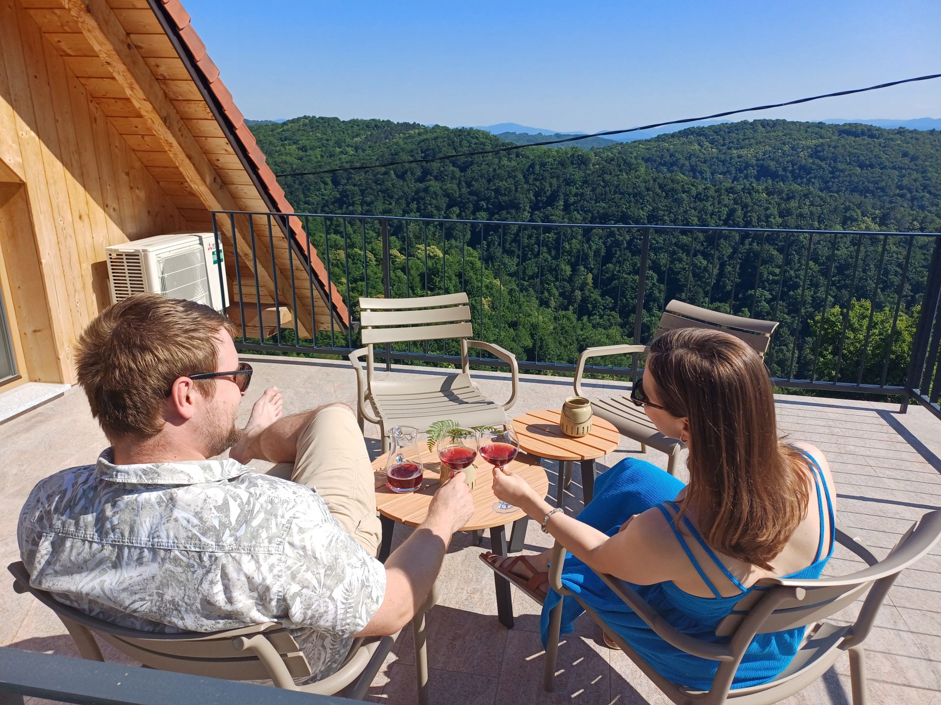 Our vineyard cottage, a modern new building from 2023, offers all the comforts of modern living while retaining the authentic warmth of home. You will be enchanted by the breathtaking panorama of vineyards, forests, and unspoiled nature, which you can admire from the spacious terrace.