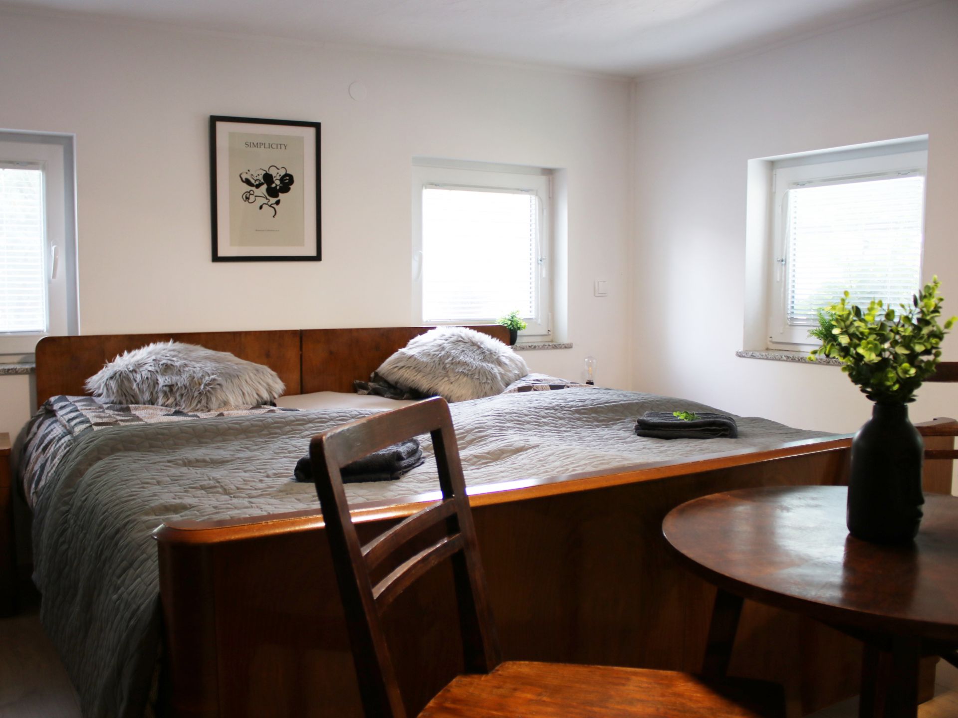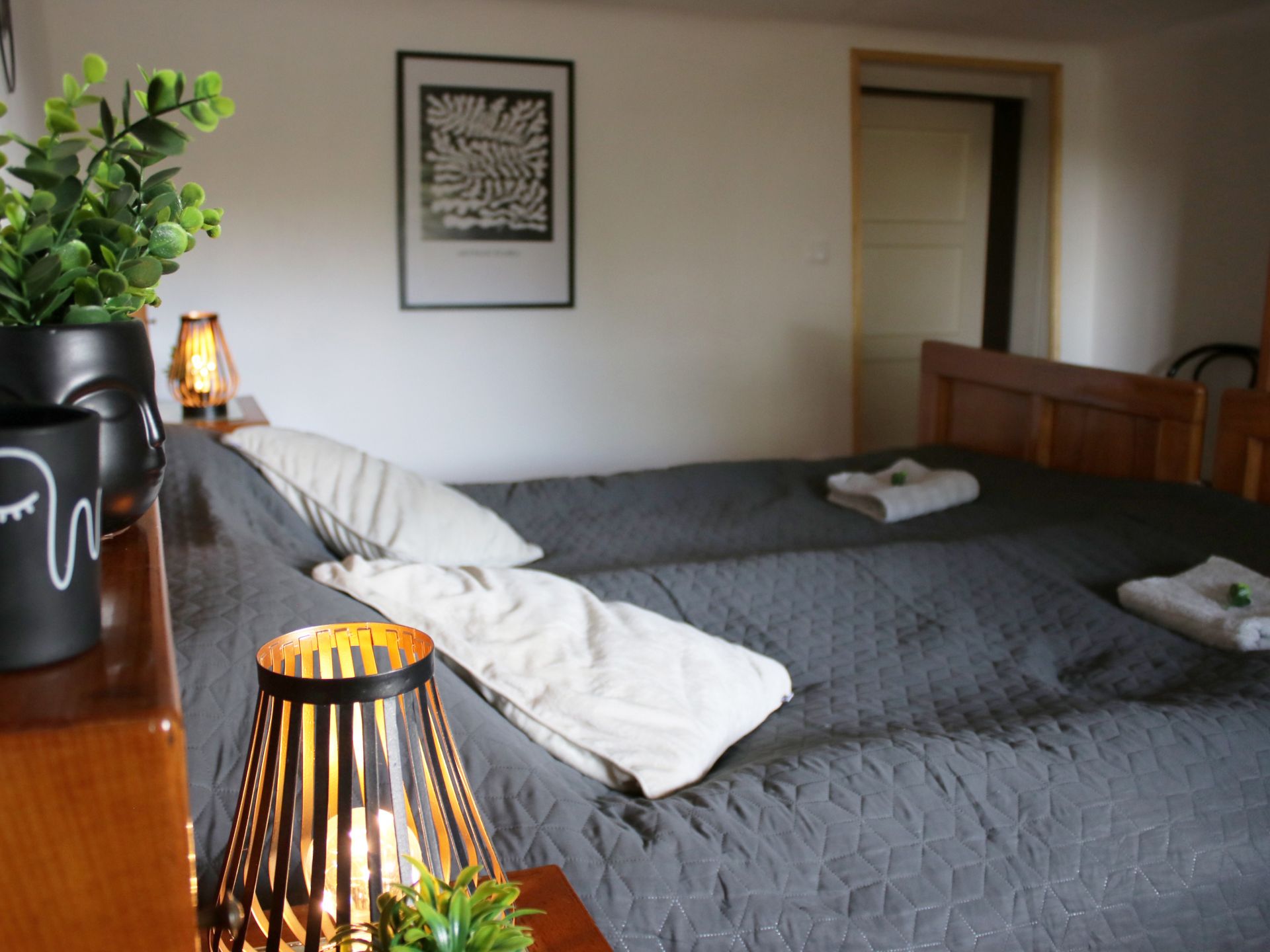 Zidanica nudi 75 m² udobja z dušo: dve prostorni spalnici, raztegljivo sedežno garnituro, dodatna ležišča po potrebi. Sprejme do 6 oseb, idealno za pare, prijatelje ali družine.